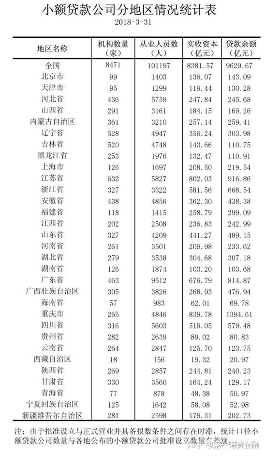 央行公布的2018年一季度小贷公司统计表显示,重庆市有小贷公司265家,从业人员数量4846人,实收资本839.78亿元,贷款余额1394.61亿元。重庆地区的贷款余额和实收资本都位居全国第一。