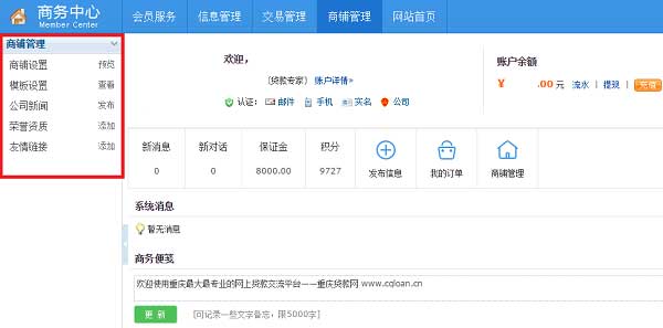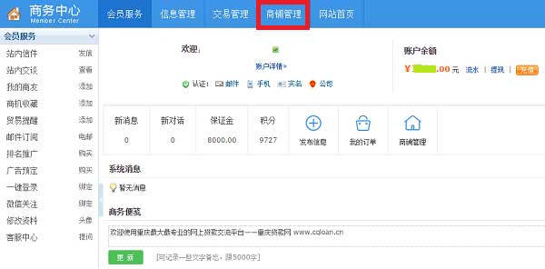 一、会员登录,进入商务中心: