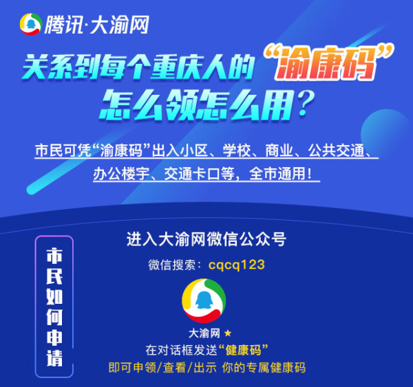 第一步,微信搜索cqcq123进入大渝网公众号,回复“健康码”进入渝康码小程序。